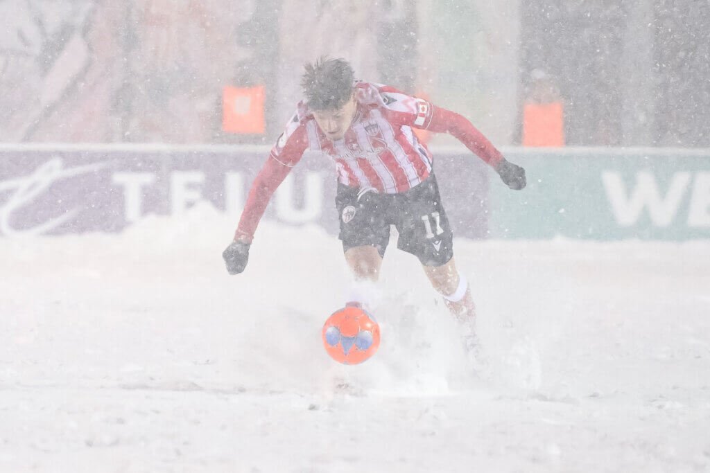 Entre-temps, la deuxième mi-temps avait été beaucoup plus compliquée avec l’accumulation de neige sur le terrain, qui a freiné la circulation du ballon et les possibilités de dribble des joueurs.